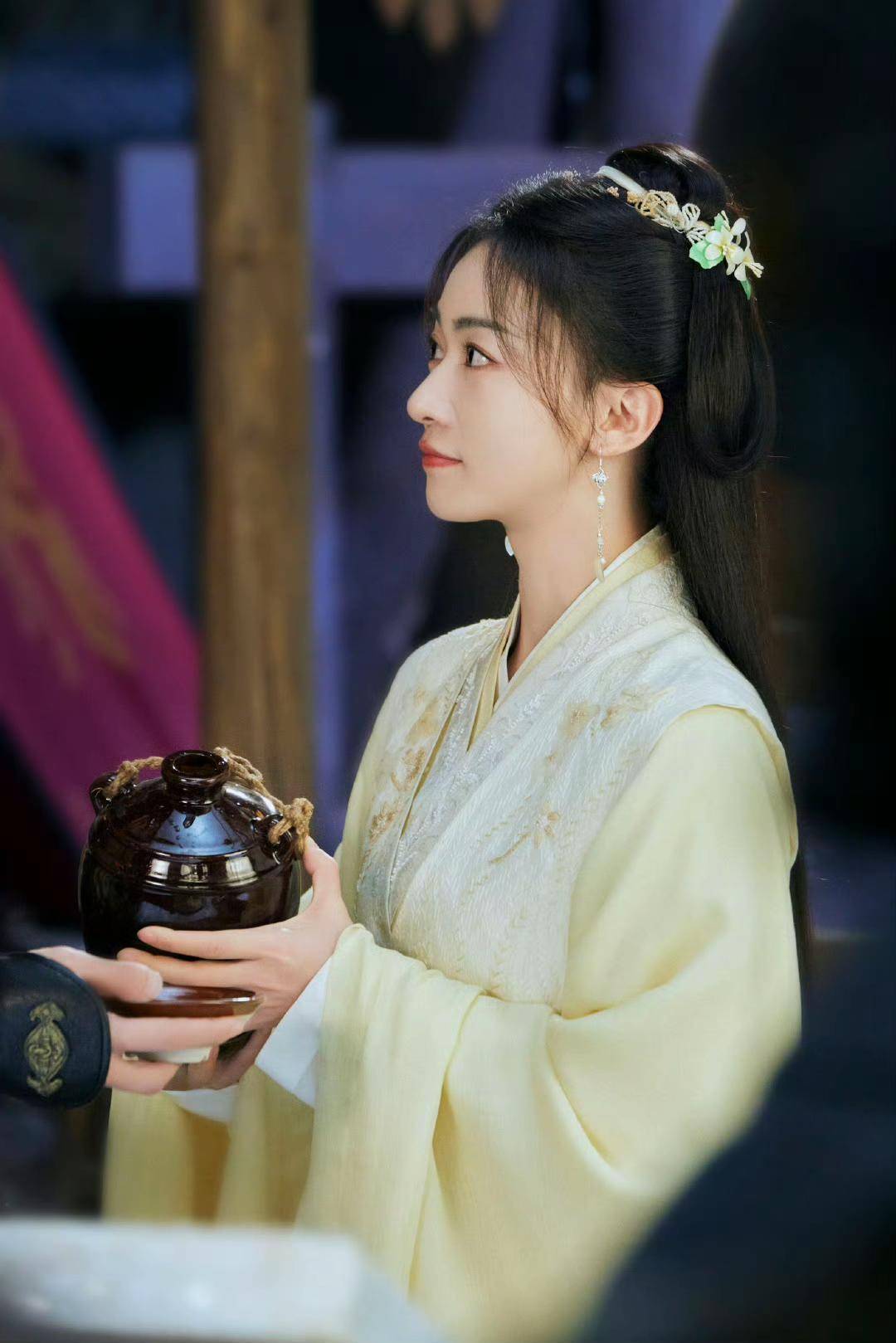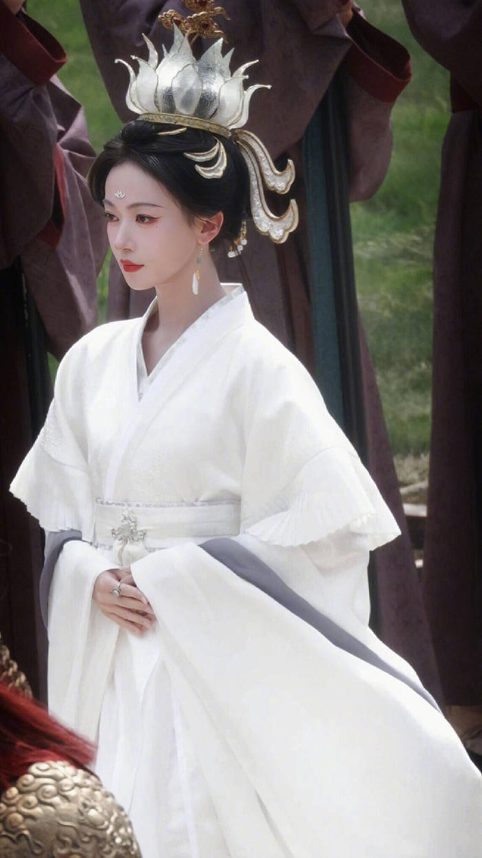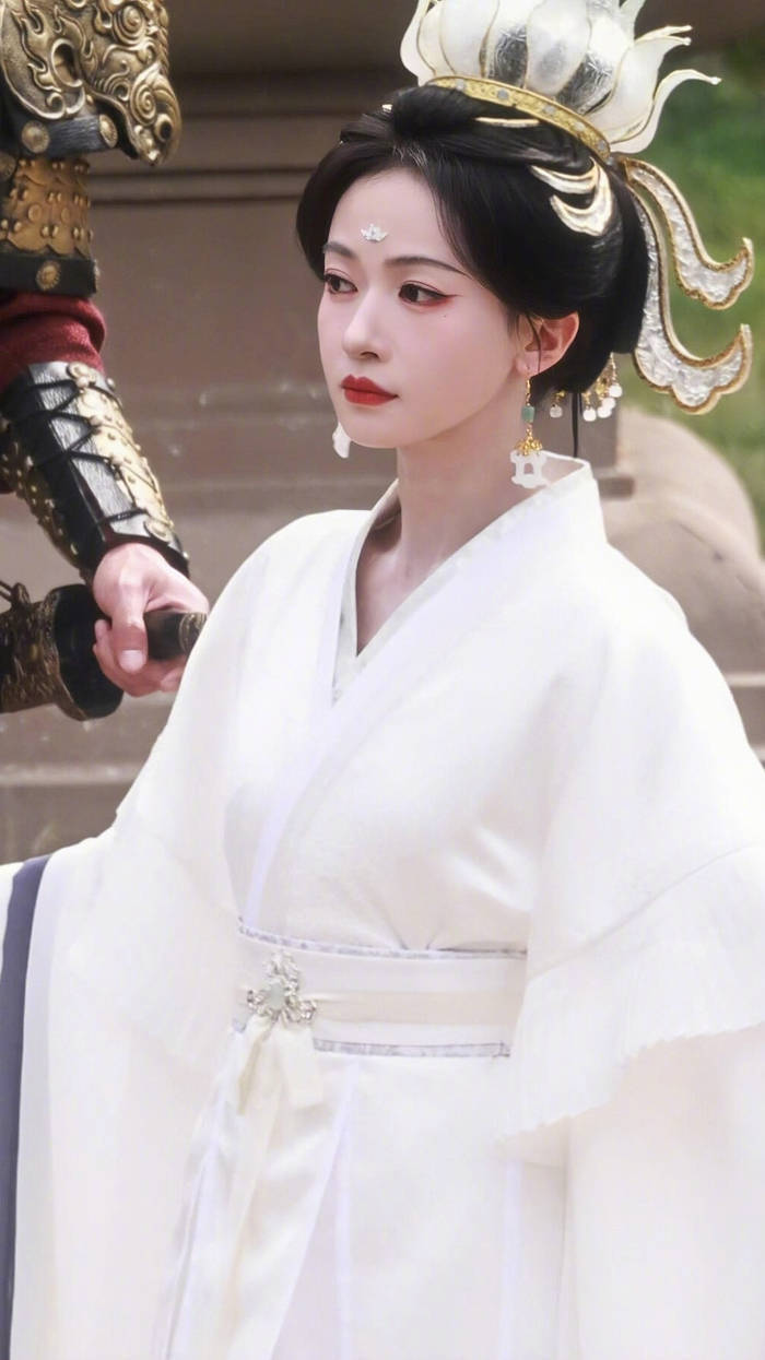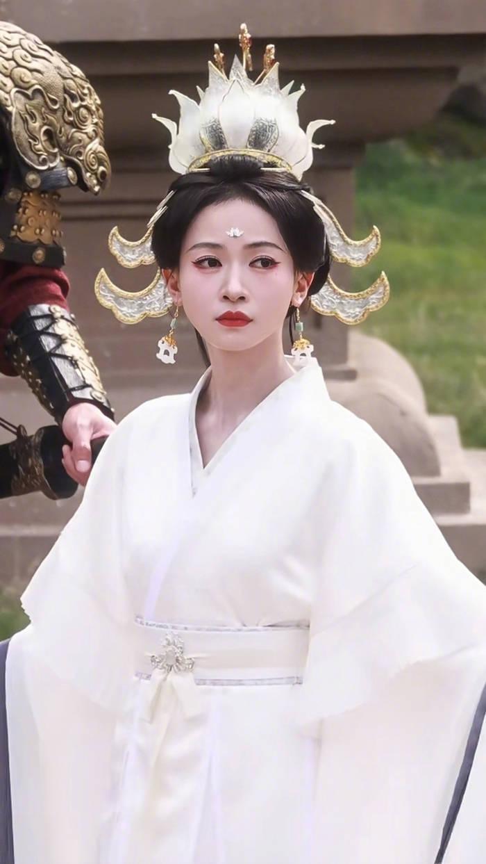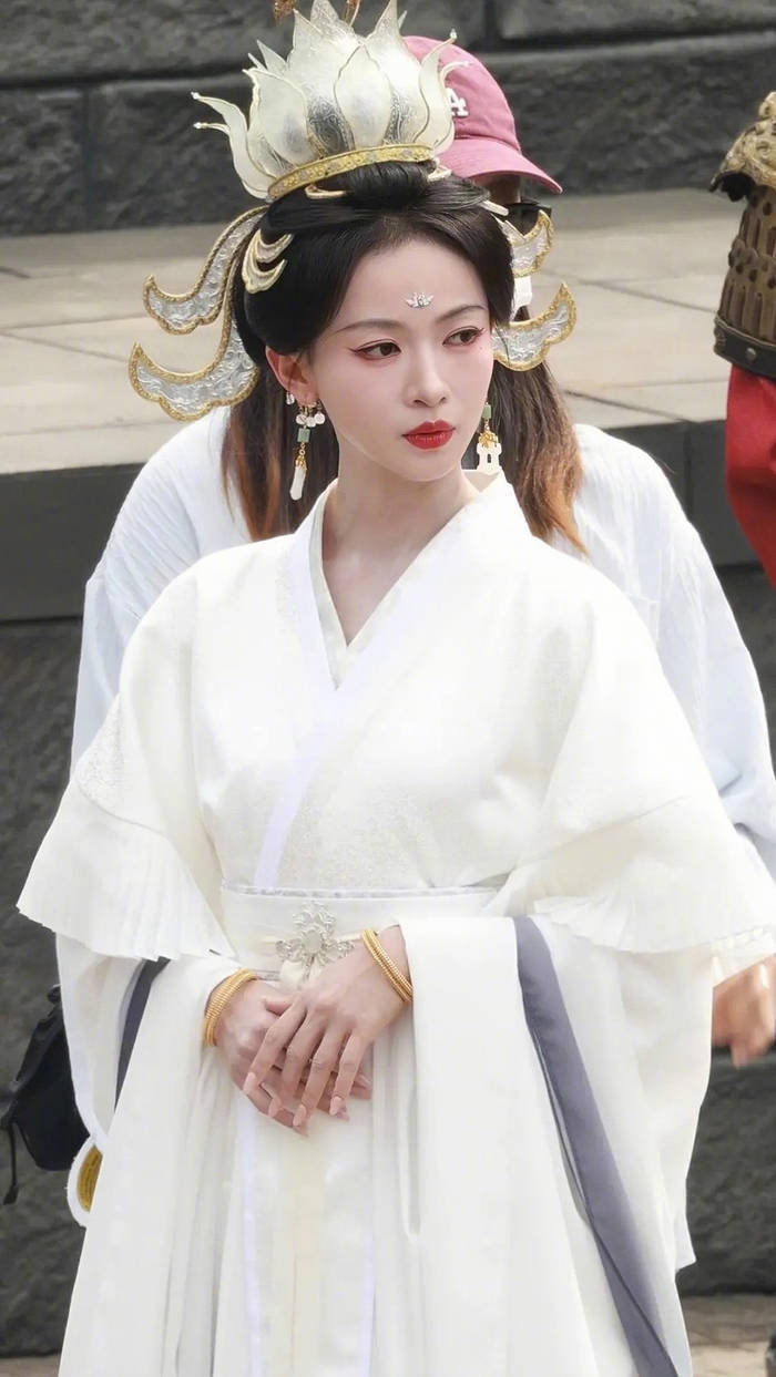 真正让大众对她改观的,是一组古装剧的路透照。照片里,她穿着飘逸的白色华服,身姿挺拔,发饰精致。最引人注目的是她的脸部状态,不再是过去那种凹陷的瘦削,而是多了几分恰到好处的肉感。这种丰润不仅没有让她显得臃肿,反而放大了她原本大气的五官,让她的气质从过去的“伶俐丫头”转变为“清冷神性”,站在那里就自带一种故事感,与剧中女帝角色需要的威严感完美契合。